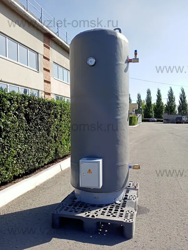 - Комплектация: группа безопасности (обратный и предохранительный клапан), термоманометр, патрубок рециркуляции, поплавковый датчик, рабочий и аварийный температурные датчики.