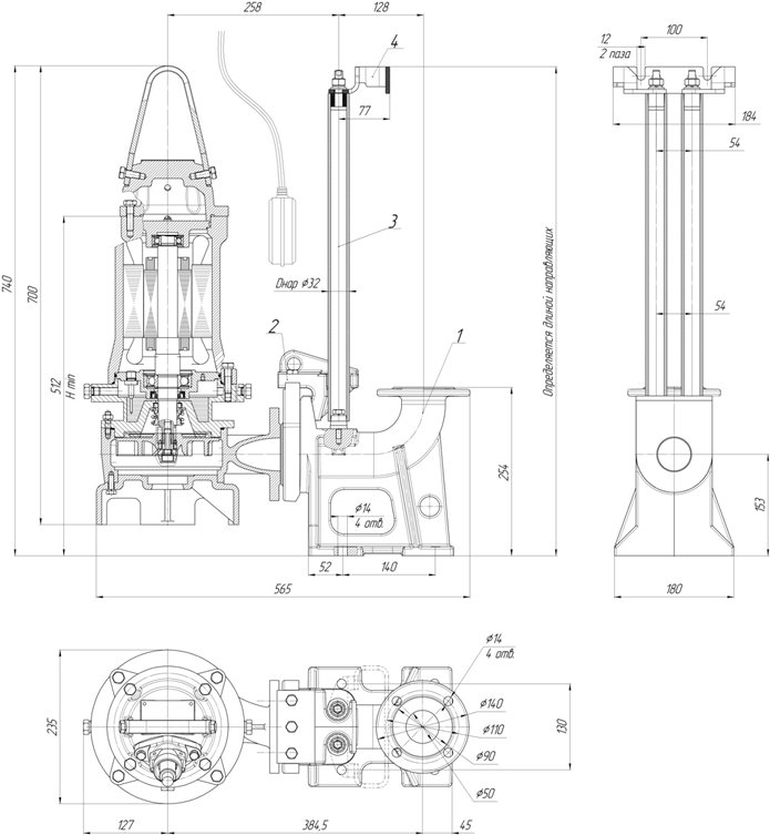 2. Насосы при работе должны быть постоянно погружены в перекачиваемую жидкую среду, уровень которой меняется; при достижении заданного минимального уровня жидкости насос отключается. Минимальный уровень жидкости определяется высотным размером насоса; при использовании рубашки охлаждения минимальный уровень жидкости определяется высотой гидравлической части насоса.